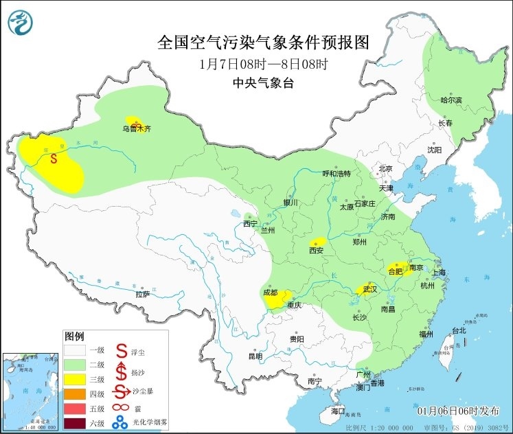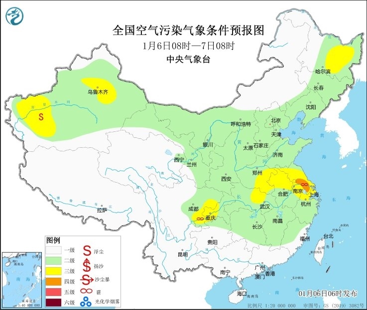 央視網(wǎng)消息:中央氣象臺6日6時繼續(xù)發(fā)布大霧黃色預(yù)警。此外,6日白天起,受冷空氣影響,黃淮南部、江淮北部等地的霾天氣逐漸減弱消散。