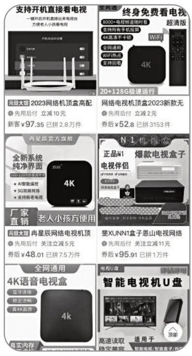 購(gòu)物平臺(tái)上出售的網(wǎng)絡(luò)電視機(jī)頂盒種類很多。