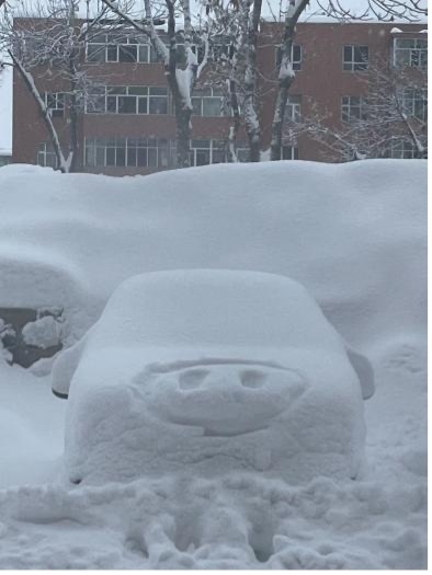 布爾津縣城,汽車被積雪覆蓋 受訪者供圖