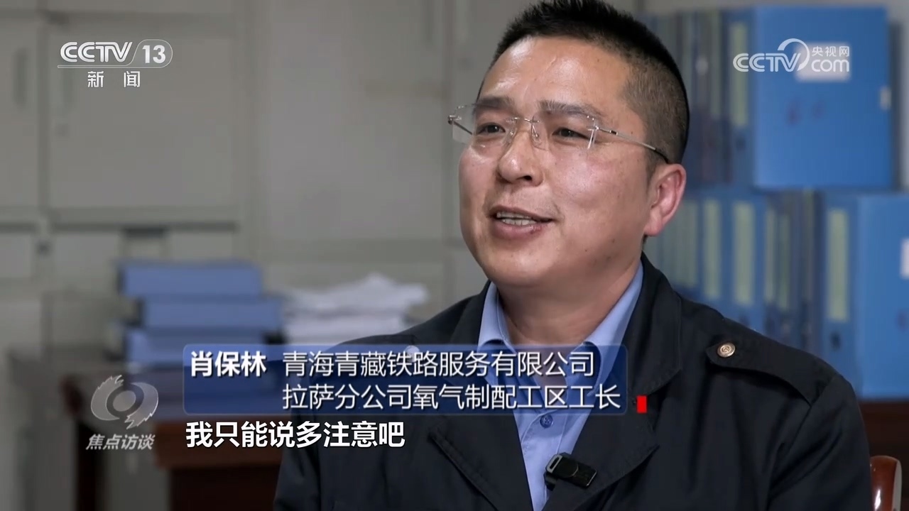 青海青藏鐵路服務(wù)有限公司拉薩分公司氧氣制配工區(qū)工長肖保林:“家里面他們也比較擔(dān)心,我只能多注意。我比較喜歡運(yùn)動(dòng),增加心肺功能,盡可能適應(yīng)高海拔地區(qū)重體力作業(yè)?!?/p>