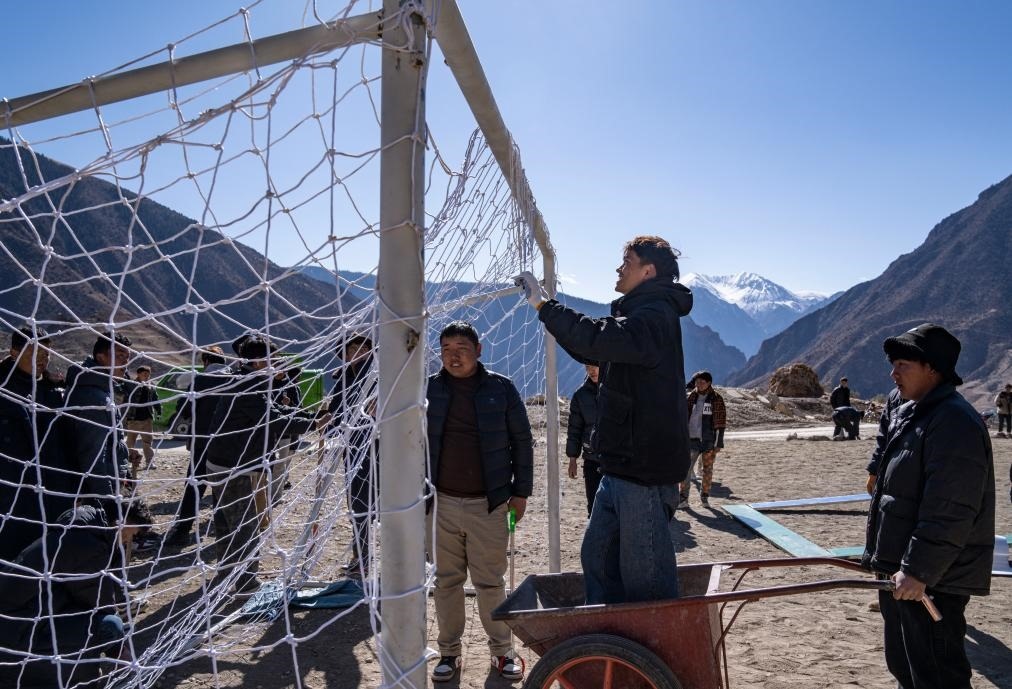修好啦,嘎瑪群美帶著摩托車隊馱著球門興沖沖回村