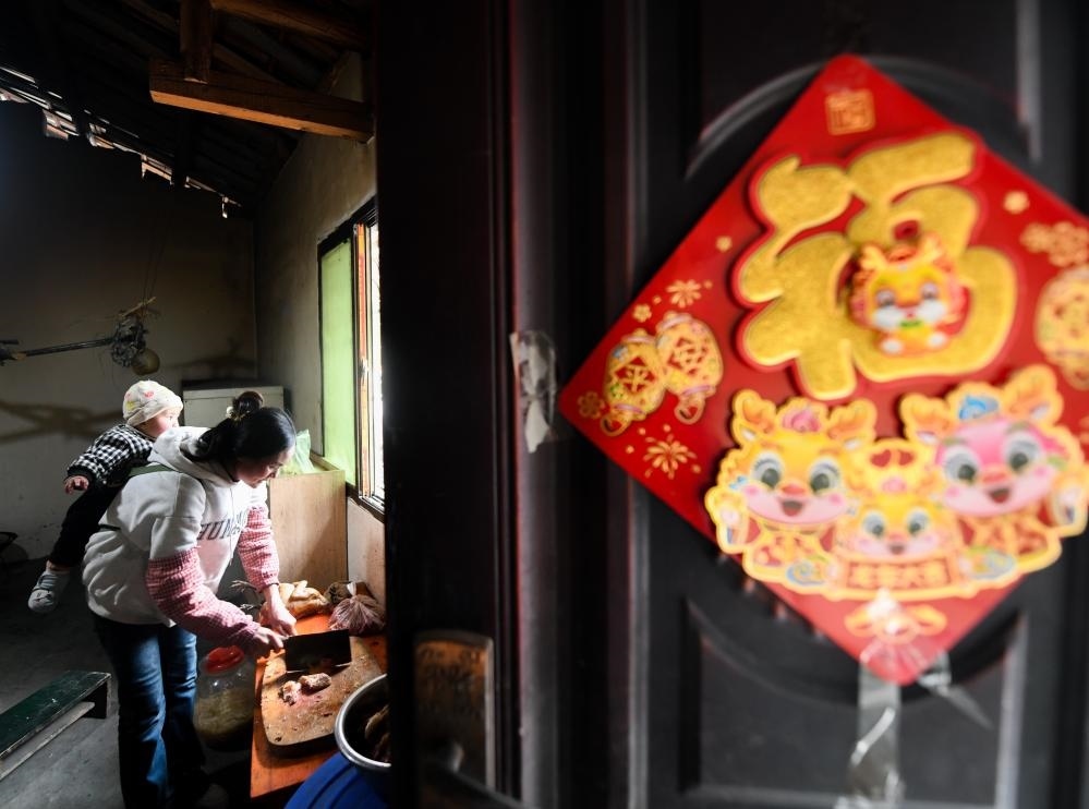 2月3日,在越西縣中所鎮(zhèn)陶家營村,游客到羅國芹家開的農(nóng)家樂用餐。新華社記者 周科 攝