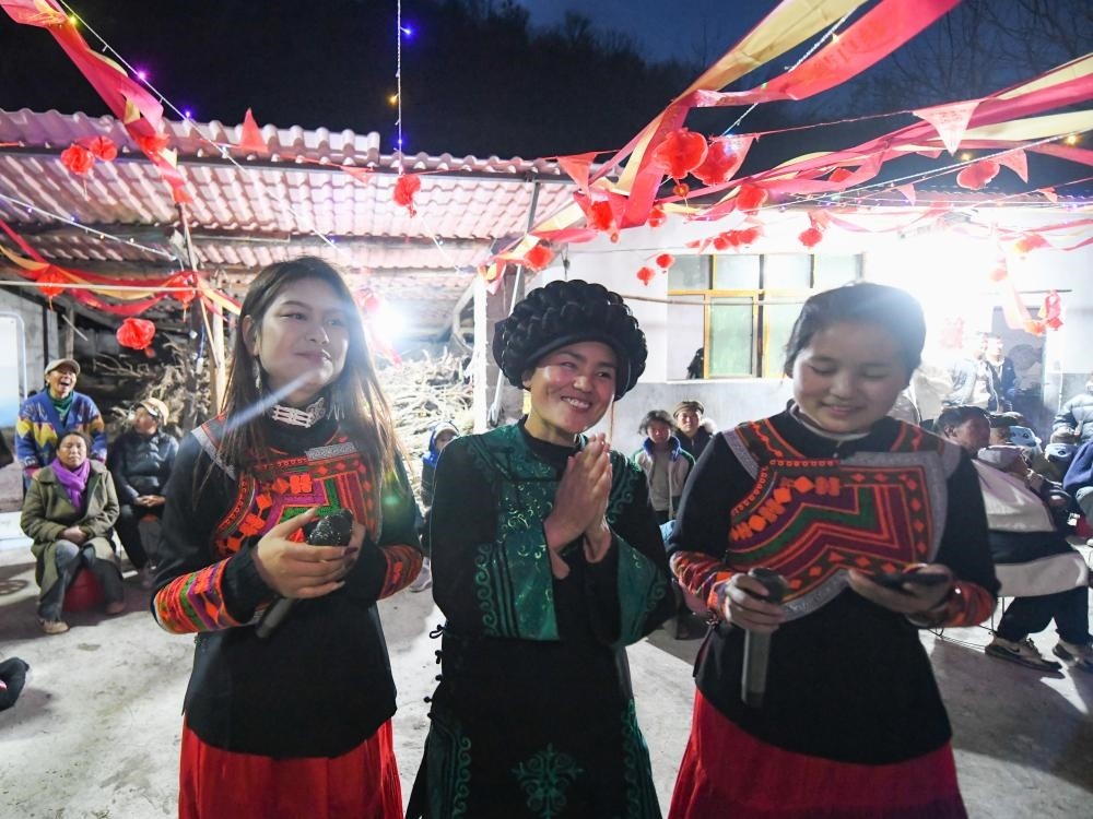 巫其石且的大哥巫其拉鐵家有好幾個女兒。正是拉鐵的二女兒巫其小梅在社交媒體上認出新華社記者發(fā)布的照片拍的是巴木,才讓新華社記者最終找到了巴木。2日,是小梅的姐姐巫其小冰出嫁的日子,青年男女載歌載舞,給新人以祝福。