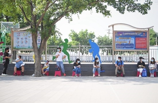 2021年6月12日,北京豐臺二中附屬看丹小學(xué)門外,陸續(xù)有家長帶著相關(guān)材料排隊等待9點準(zhǔn)時開啟的入學(xué)信息審核。視覺中國供圖