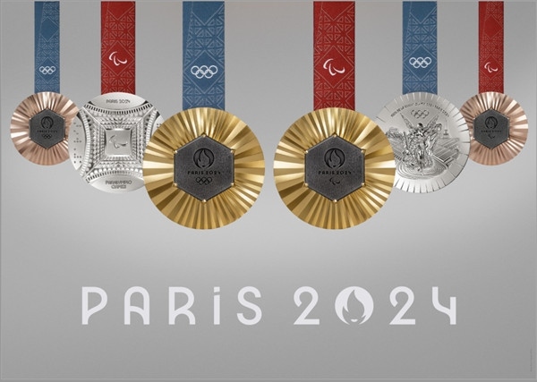 ·巴黎奧運會和殘奧會獎牌亮相,設(shè)計靈感來自埃菲爾鐵塔。