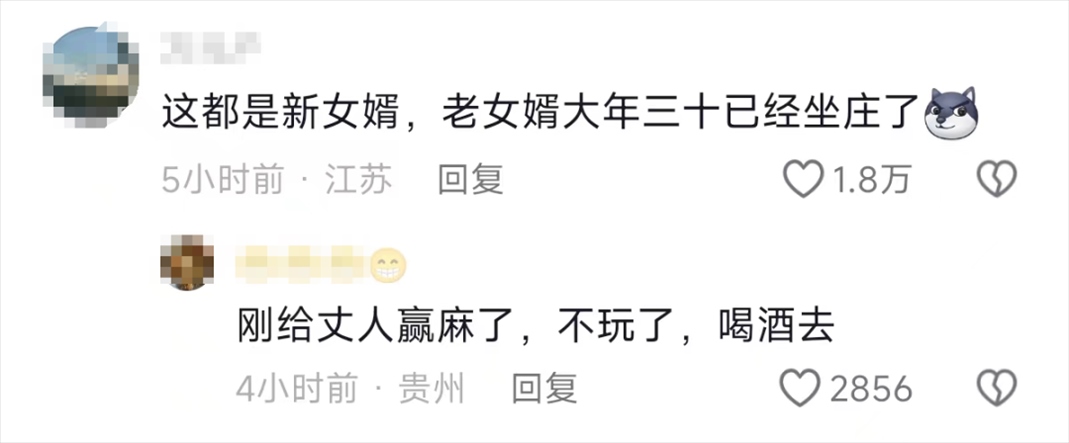 不過,網友們指出,這些顯得格格不入的都是新女婿,老女婿大年三十已經坐莊了,懂事的女婿還讓丈人贏錢了。