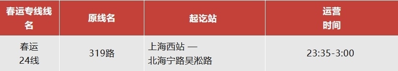 注:上海火車站春運(yùn)專線運(yùn)營日期為2月14日至3月5日。