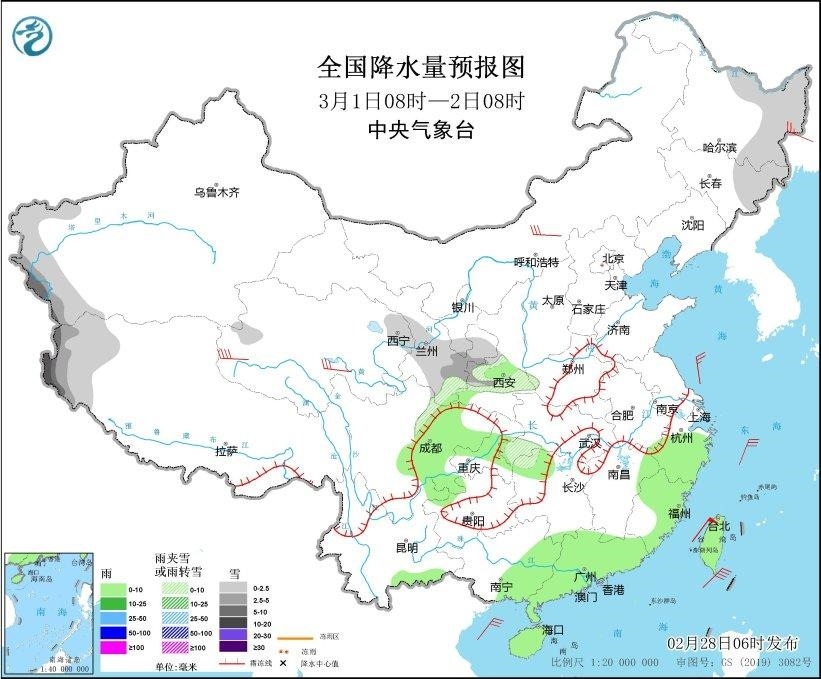 中新網(wǎng)2月28日電 據(jù)中央氣象臺(tái)網(wǎng)站消息,昨日內(nèi)蒙古、吉林等地出現(xiàn)降雪,江南地區(qū)等地出現(xiàn)弱降雨。28日至3月1日冷空氣影響中東部地區(qū),關(guān)注西北地區(qū)東部及黃淮南部至江南等地雨雪天氣對(duì)春運(yùn)交通、城市運(yùn)行、農(nóng)業(yè)生產(chǎn)等的影響。