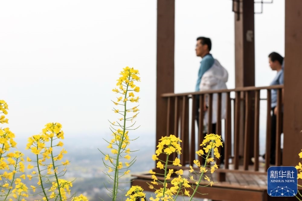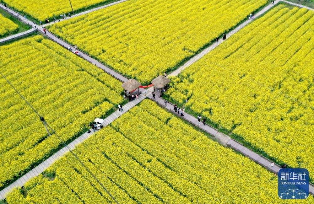 3月23日,游人在湖北省浠水縣巴河鎮(zhèn)城山村賞花游覽。新華社發(fā)(趙軍攝)