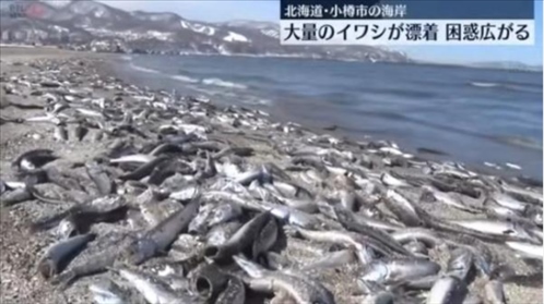 ·日本一海灘現(xiàn)沙丁魚尸體綿延7公里,當?shù)卣粲蹙用癫灰|碰死魚。