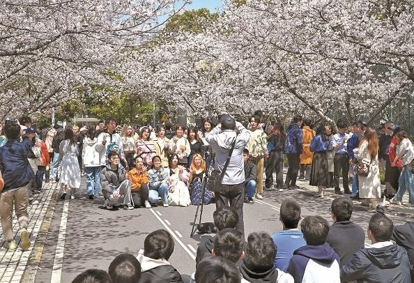 江南三月,草長(zhǎng)鶯飛,楊柳拂堤。又是一年春光大好,同濟(jì)大學(xué)愛(ài)校路上又現(xiàn)繁花盛景。櫻花季,大學(xué)校園向社會(huì)開(kāi)放的同時(shí),也帶來(lái)一個(gè)老生常談的話題:是否影響了學(xué)生學(xué)習(xí),外來(lái)游客是否搶占了校園資源?畢竟,很多人賞花時(shí),學(xué)生們往往也在上課,花樹(shù)就在教室的窗邊,外面的喧嘩聲聽(tīng)得很真切。更嚴(yán)重的是,老師授課時(shí)講話的聲音都能被那些嘈雜聲淹沒(méi)。