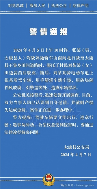 ·女子因蒜苗被軋壞怒砸奔馳車,河南太康警方通報。