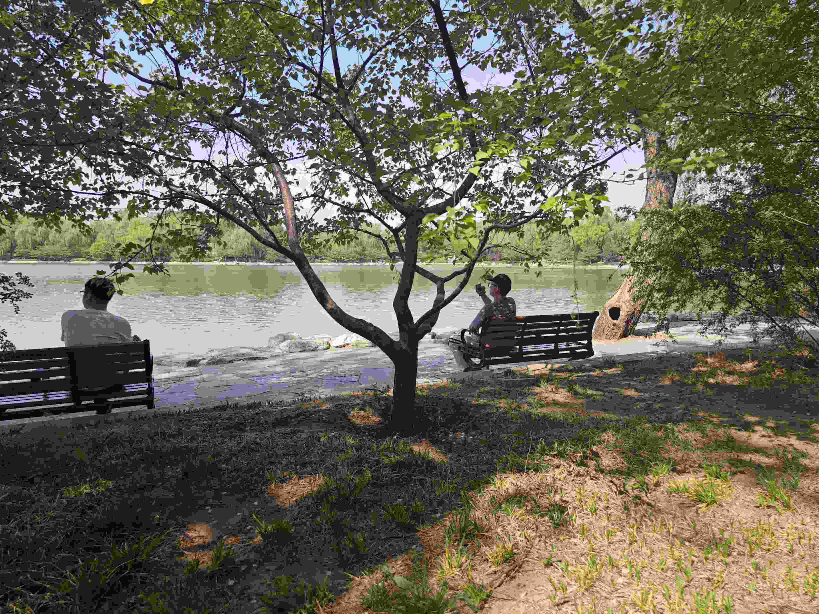 坐在湖邊長椅上的王先生,正靜靜地享受著屬于他的獨處時光?!稗k公室里開了一上午會,中午短暫地在公園中坐上一二十分鐘,哪怕只是發(fā)發(fā)呆,都能感受到輕松快樂,這是一天忙碌工作中最珍貴的放松時光了。”