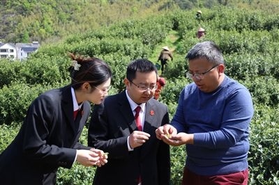 草木蔓發(fā),春山可望。浙江省金華市婺州舉巖茶基地迎來了春茶采摘季。近日,金華市婺城區(qū)人民法院干警來到基地,回訪采云間公司,了解該公司重整成功后的春茶開采工作。