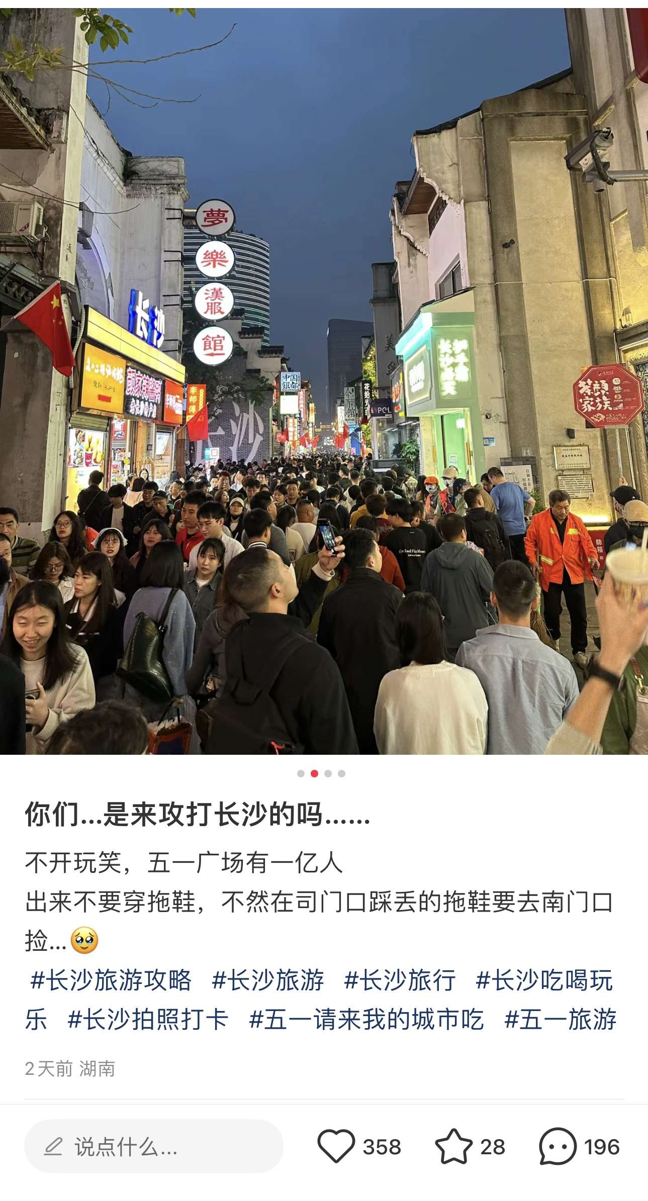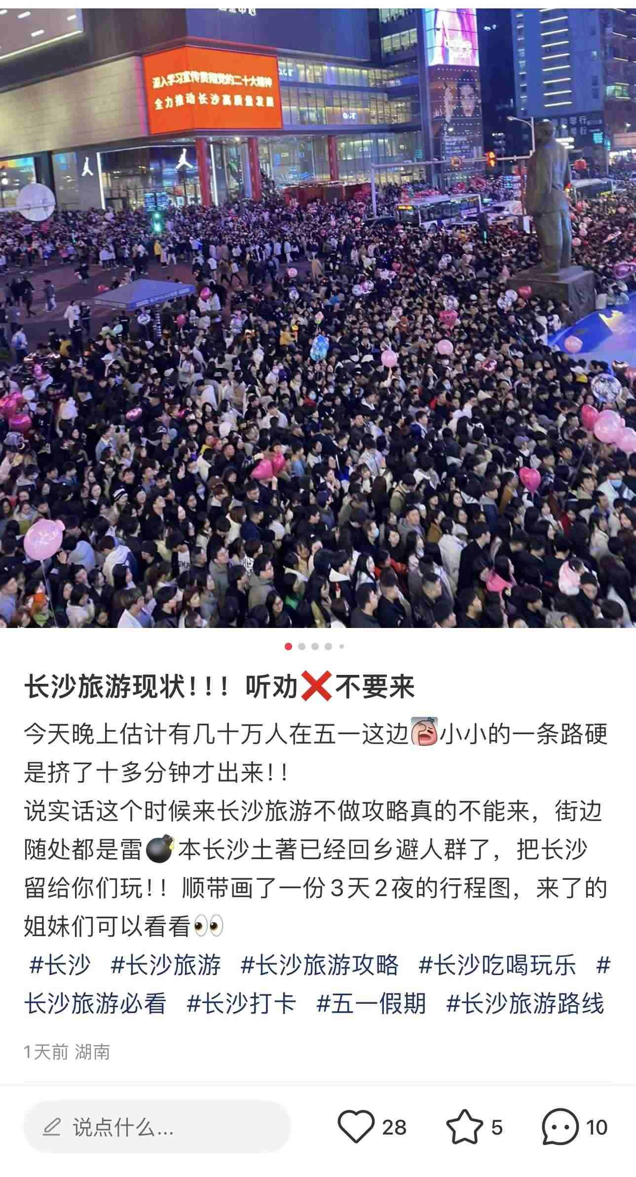 其中長沙和南京在社交平臺上似乎被“攻打”最多。某IP位于湖南的網(wǎng)友在社交平臺發(fā)布的筆記稱:“帶隊攻打的岳麓山……長沙很好玩,下次不節(jié)假日來了……我差點擠死在長沙?!?/p>