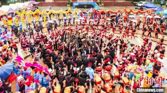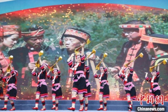 開幕式上,當(dāng)?shù)噩幾迕癖娨愿挥忻褡逄厣母栉?、瑤服服飾走秀等表演迎接?lái)自四面八方的賓客。