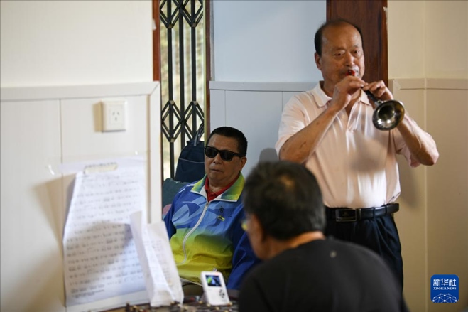 “音樂是我的老年生活中唯一的愛好?!睒肥掷罱ㄖ杏邢忍煨园變?nèi)障,是樂隊“元老級”成員,“因為自己也有眼疾,深知視障人士的不易,張會長的無私奉獻讓人感動?!?/p>