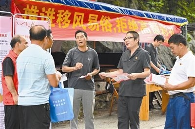 近日,廣西壯族自治區(qū)上林縣人民法院開展“推進移風易俗,拒絕高額彩禮”法治宣傳進鄉(xiāng)村活動。法院干警通過以案釋法和分發(fā)文明婚俗倡議書等方式,為村民解讀了涉彩禮糾紛法律規(guī)定,并就村民關注的彩禮認定范圍、返還規(guī)則以及男女雙方共同生活認定規(guī)則等熱點問題進行了釋法答疑。圖為法院干警在和村民交流。本報記者 吳 琪 本報通訊員 韋姍婷 周 群 攝