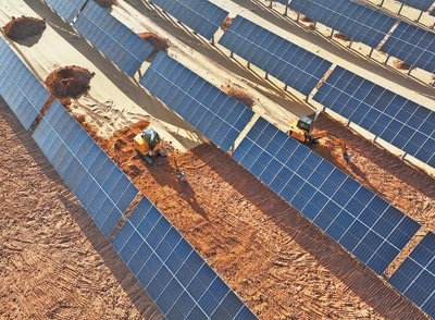 “沙漠地勢(shì)起伏不定,我們需要平整場(chǎng)地,方便光伏板的安裝?!蓖鮼啳偢嬖V記者,“在不久的將來(lái),這片漫漫沙海將變身為一片深藍(lán)色的‘光伏海洋’?!?/P>