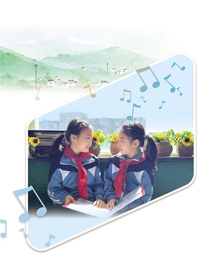 講臺上,隨著廖光新的雙手向前一打開,學(xué)生們齊刷刷地唱了起來。“今天天氣好,去找嘎嘎(外婆)嘍……”稚嫩而清脆的聲音瞬間充滿整個教室,透過窗戶傳向遠(yuǎn)處的大山。