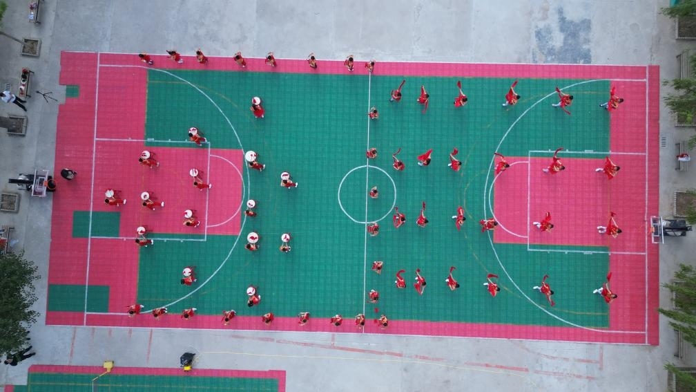 5月27日,肖紅坪小學(xué)的學(xué)生正在排練鼓樂(lè)表演(無(wú)人機(jī)照片)。新華社記者張智敏 攝