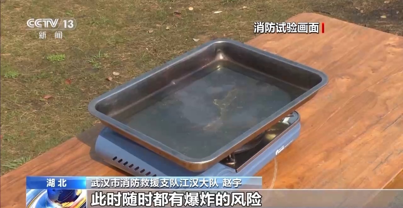 剛才我們看到的兩起事故都是卡式爐爆炸引起的。卡式爐是以瓶裝丁烷氣為主要燃料,用火進行直接加熱的非固定式烹飪廚具。在露營中,很多人選擇攜帶卡式爐進行烹飪,那么,什么情況下卡式爐可能會發(fā)生爆炸?使用過程中要注意哪些問題?消防人員通過試驗來給我們做了演示和講解。