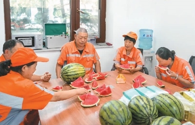 6月11日,山東省濟南市繼續(xù)發(fā)布高溫紅色預警信號。為應對持續(xù)高溫天氣,濟南市城管部門采取調整作業(yè)時間、配發(fā)防暑降溫物品、增加歇腳點等措施,保障環(huán)衛(wèi)工人健康。圖為環(huán)衛(wèi)工人在濟南市槐蔭區(qū)一處歇腳點內休息。新華社記者 朱 崢攝
