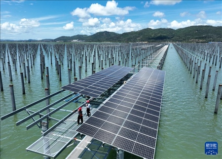 三峽集團(tuán)東山杏陳180MW海上光伏電站位于福建省東山縣杏陳鎮(zhèn)、前樓鎮(zhèn)海域,這里日照長、風(fēng)速大,屬于抗臺型潮汐帶海上光伏項(xiàng)目。該項(xiàng)目采用上部光伏發(fā)電與下部海域漁業(yè)養(yǎng)殖相結(jié)合的模式,實(shí)現(xiàn)海域立體綜合開發(fā)。