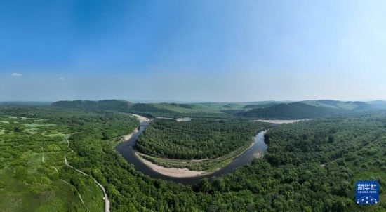 7月2日拍攝的額爾古納市額爾古納國家濕地公園(無人機(jī)全景照片)。