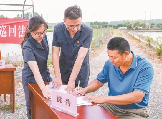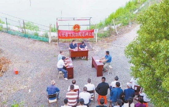 近日,安徽省天長市人民法院秦欄人民法庭法官來到東風村螃蟹養(yǎng)殖基地,公開開庭審理一起農業(yè)承包合同糾紛案。法官經(jīng)過現(xiàn)場勘查、細心調解,當場化解糾紛,養(yǎng)殖戶投放的500斤蟹苗有了著落,村委會減少了經(jīng)濟損失。