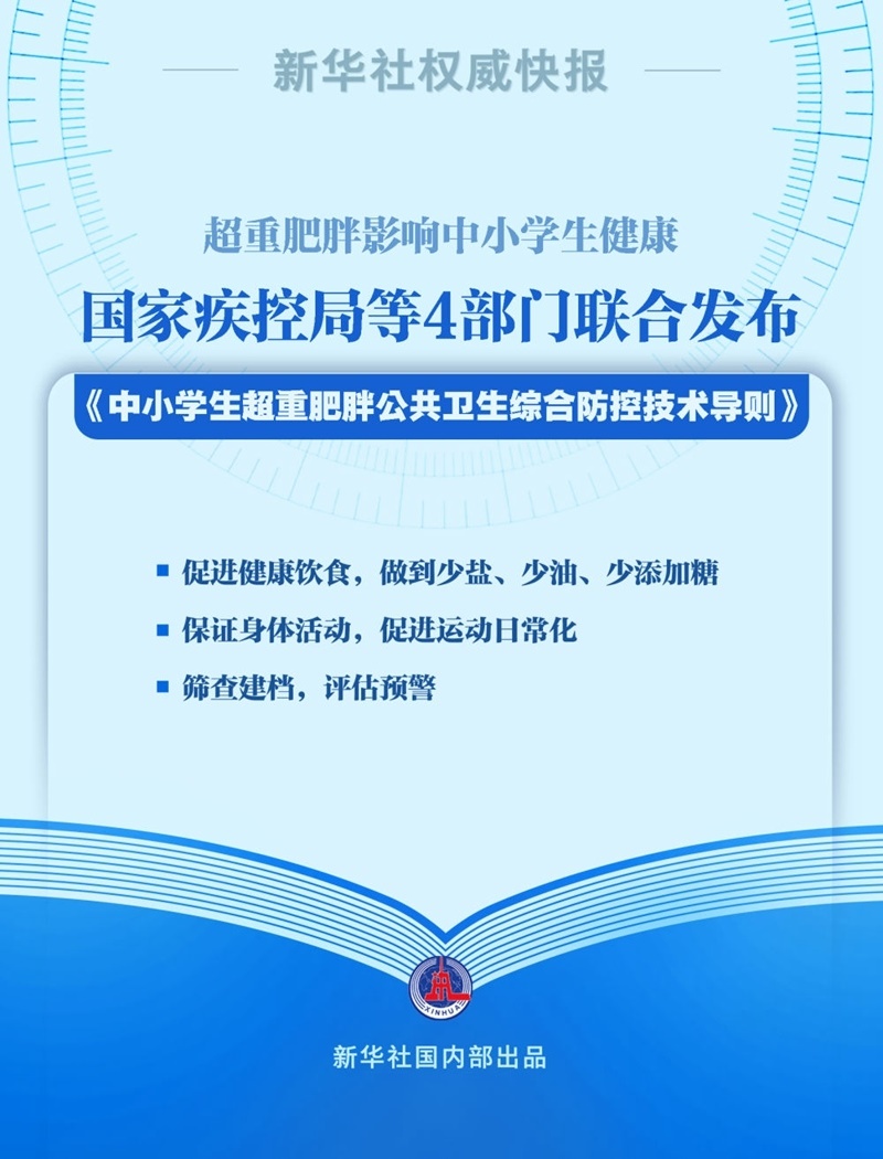 7月22日,國家疾控局、教育部、國家衛(wèi)生健康委和國家體育總局聯(lián)合發(fā)布《中小學生超重肥胖公共衛(wèi)生綜合防控技術導則》。