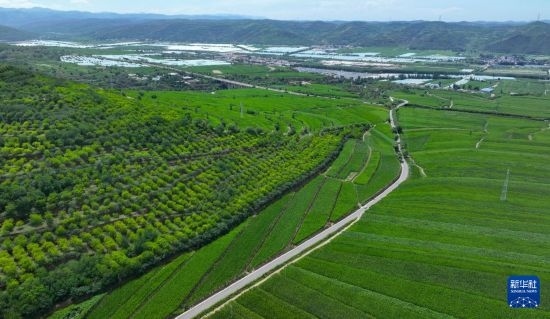 這是寧夏固原市隆德縣沙塘鎮(zhèn)境內(nèi)的一條柏油農(nóng)村公路(7月26日攝,無人機照片)。