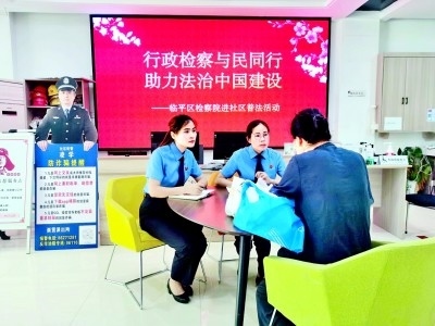 浙江省杭州市臨平區(qū)檢察院進(jìn)社區(qū)開展“行政檢察,與民同行”主題普法宣傳活動,為居民提供法律咨詢服務(wù)。資料圖片