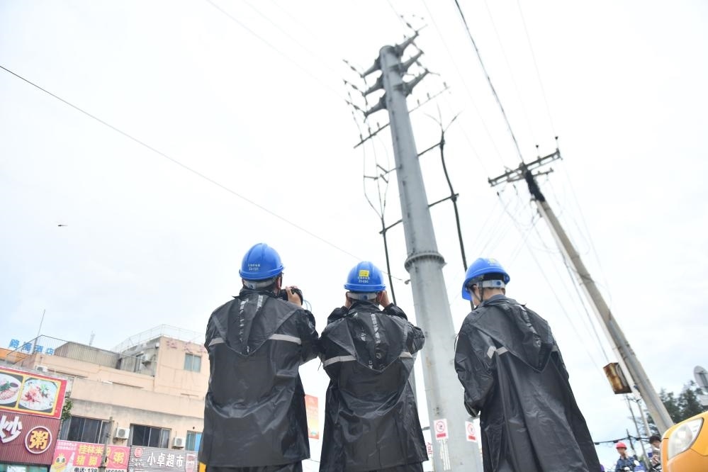 9月6日,在廣西北海市僑港鎮(zhèn),南方電網(wǎng)北海供電局的工作人員在監(jiān)測(cè)線路。新華社記者 黃孝邦 攝