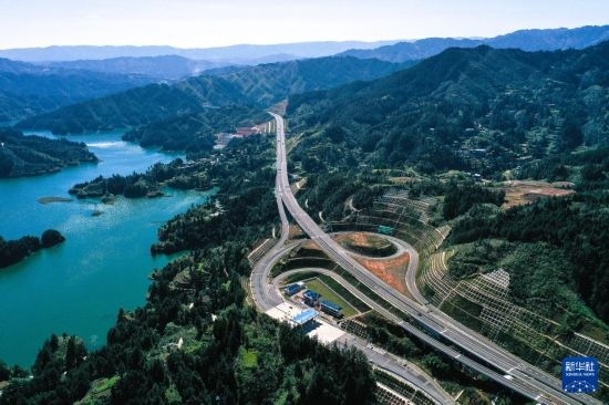 10月25日,車(chē)輛在貴州劍黎高速固本互通附近行駛(無(wú)人機(jī)照片)。