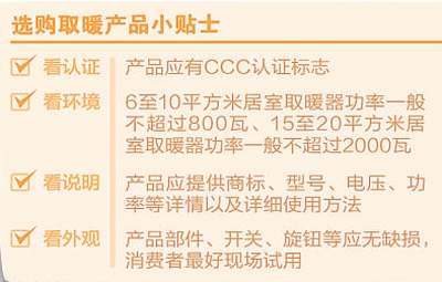 湖南省產(chǎn)商品質(zhì)量檢驗(yàn)研究院家用電器質(zhì)量檢驗(yàn)工程師周惟聞提醒消費(fèi)者,可通過觀察、觸摸等方式發(fā)現(xiàn)產(chǎn)品缺陷,比如線纜過細(xì)過軟、外殼過薄等,取暖產(chǎn)品線纜也需要符合CCC認(rèn)證,如果線纜上沒有規(guī)范標(biāo)注認(rèn)證標(biāo)志、型號、參數(shù)等,盡量不要選購。