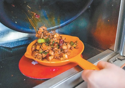 劉楊現(xiàn)場(chǎng)下單了一份干燒雙菇,炒好后,打開柜門的那一刻,香氣撲面而來。“肯定比我自己做的好吃,比一些餐廳的味道也好?!眲钫f:“如果家中來客,炒3個(gè)菜帶回家,總共也就幾十元,比下館子劃算得多?!?/p>