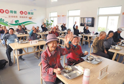 在山東省日照市東港區(qū)惠家下河村的擺渡愛心食堂,近20名75歲以上的鄉(xiāng)村老人匯聚在寬敞明亮的餐廳里,吃著熱乎乎的飯菜,臉上洋溢著舒心的笑容。