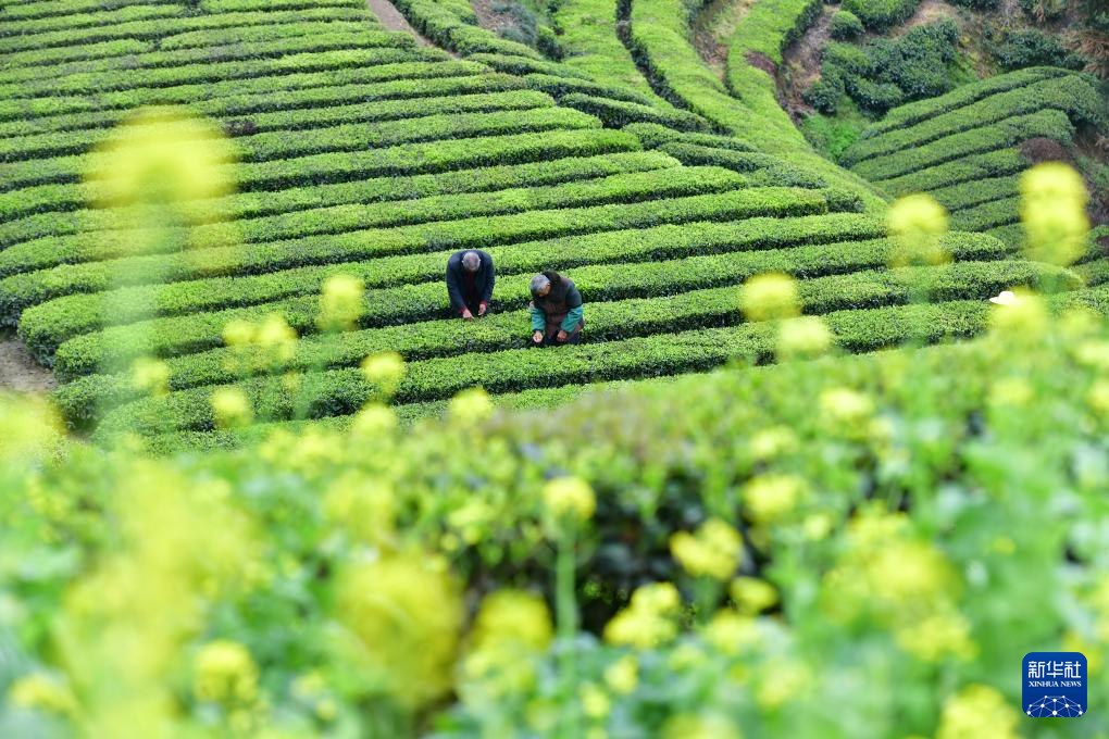 清明時節(jié)是春茶采摘旺季,茶農在茶園內忙碌,采制新茶供應市場。