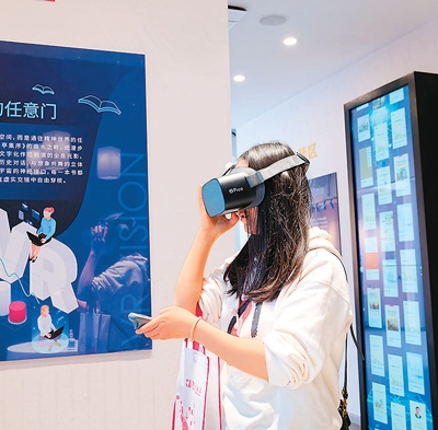 近日,云南省第四屆全民閱讀大會在昭通市昭通古城舉行?;顒影ɑ菝駮?、非遺體驗、文創(chuàng)展銷等活動,營造愛讀書、讀好書、善讀書的書香氛圍。圖為市民在云南省昭通市一家書店體驗VR閱讀。