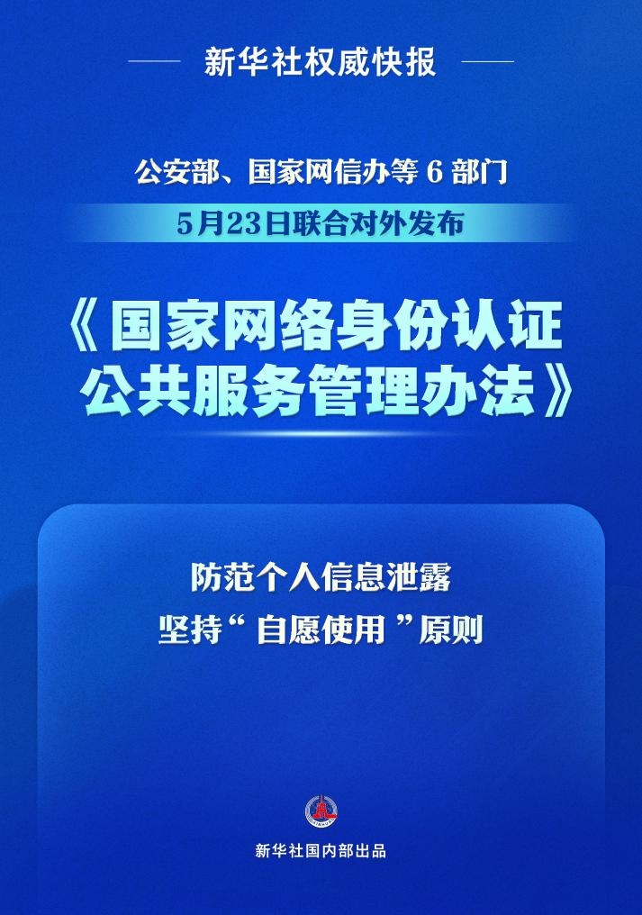 管理辦法將于7月15日起施行。公安部將聯(lián)合有關(guān)部門加大宣傳引導(dǎo)和推廣應(yīng)用力度,切實發(fā)揮國家網(wǎng)絡(luò)身份認(rèn)證公共服務(wù)的作用,拓展更多應(yīng)用場景。