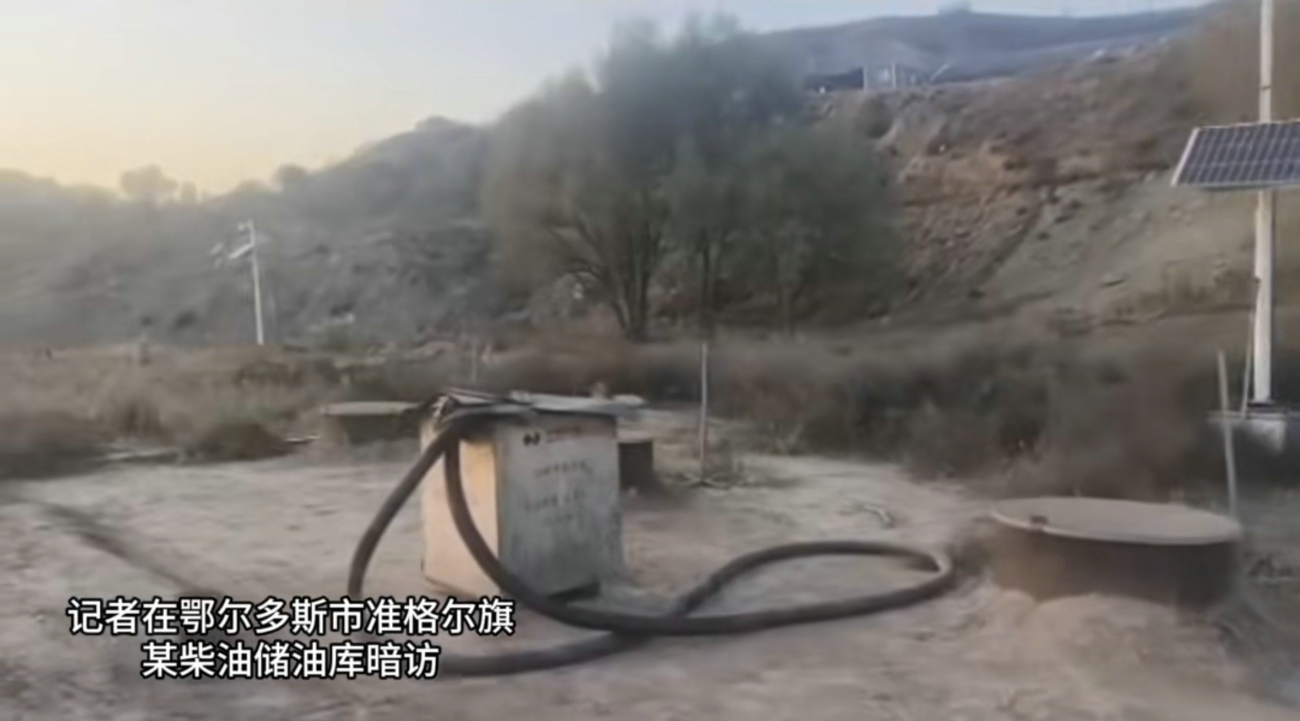 10月28日,內(nèi)蒙古日?qǐng)?bào)社張弓長(zhǎng)新聞工作室記者在鄂爾多斯市準(zhǔn)格爾旗一個(gè)緊鄰礦區(qū)的山溝里暗訪時(shí)發(fā)現(xiàn),有一處規(guī)模較大的地埋罐式柴油儲(chǔ)油庫,存在重大安全隱患。