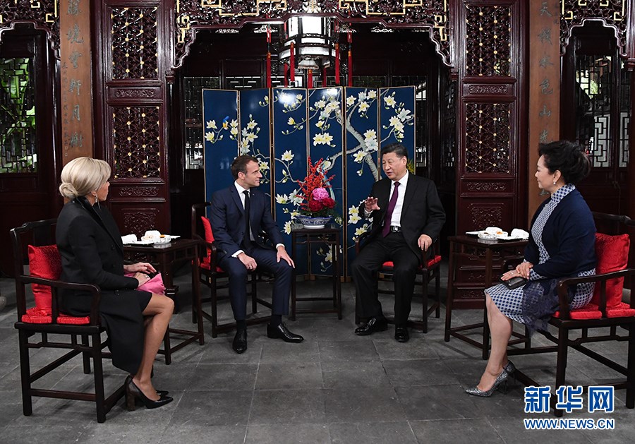 兩國(guó)元首夫婦在玉華堂落座。習(xí)近平和彭麗媛愉快地憶及今年3月訪問(wèn)法國(guó)受到馬克龍夫婦熱情款待的情景。習(xí)近平說(shuō),歡迎馬克龍總統(tǒng)再次訪華并第一次來(lái)上海。上海是中國(guó)改革開放和發(fā)展進(jìn)步的縮影,體現(xiàn)了近代以來(lái)中國(guó)同世界關(guān)系的演變。希望這次訪問(wèn)有助于你了解上海、了解中國(guó)。我和夫人選擇在豫園款待總統(tǒng)先生和夫人,希望你們能領(lǐng)略中華園林之美和中國(guó)的傳統(tǒng)文化。文化藝術(shù)表現(xiàn)形式不同,但帶給不同國(guó)家民眾的心靈體驗(yàn)是相通的,不同文化可以和諧共生。中法作為東西方兩大文明代表,應(yīng)該相互尊重,交流互鑒,各美其美,美美與共。