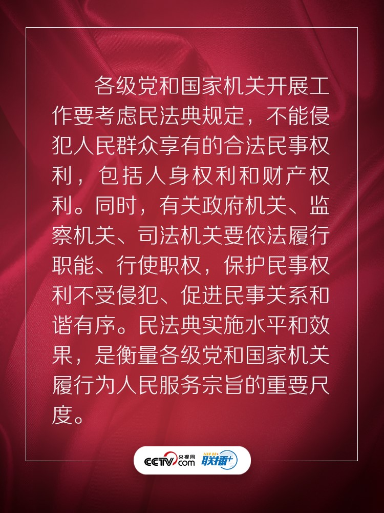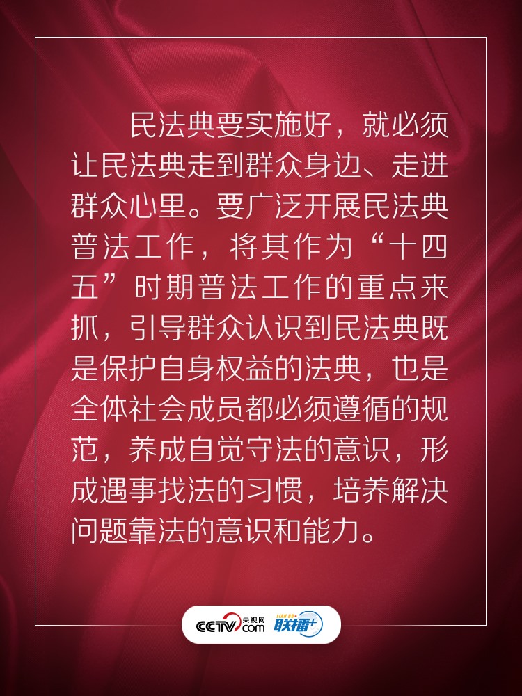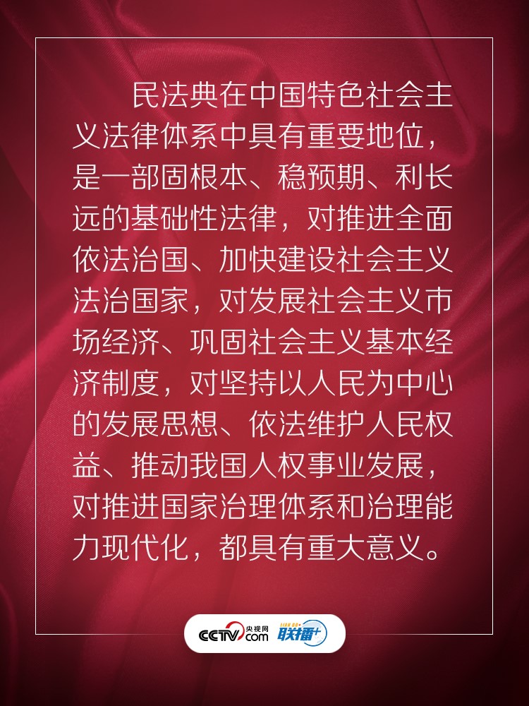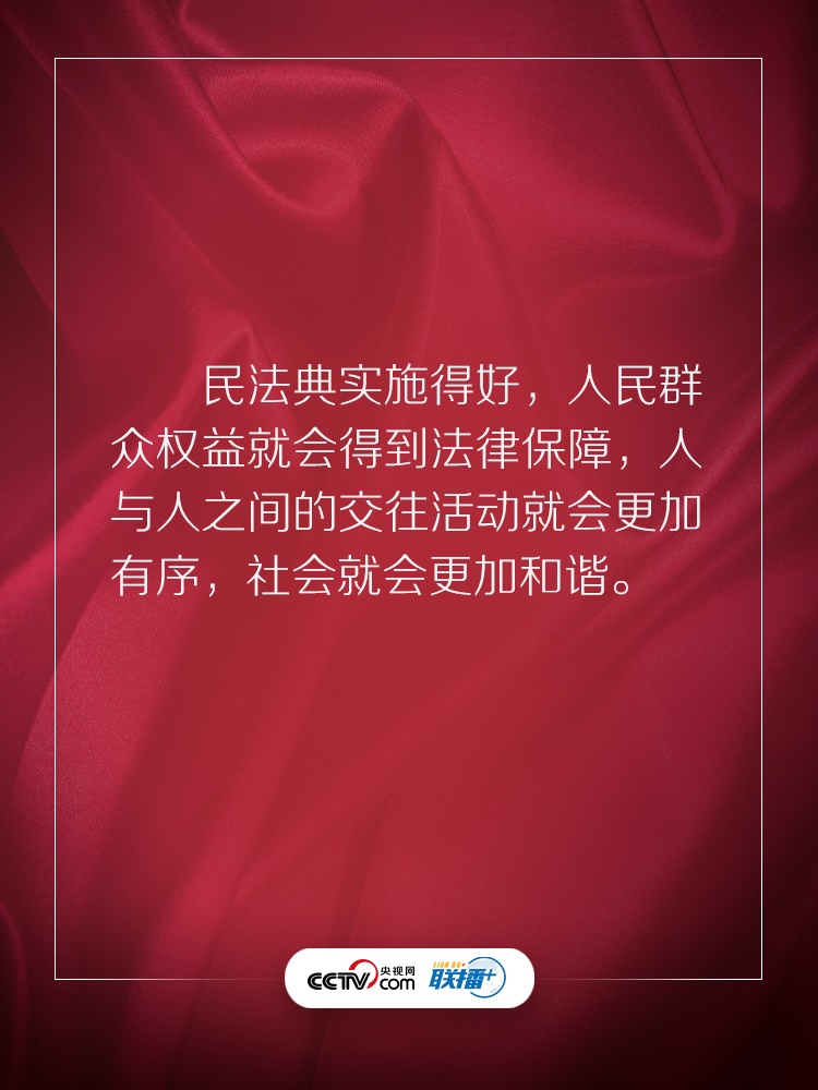 聯(lián)播+ “實施好民法典是堅持以人民為中心、保障人民權(quán)益實現(xiàn)和發(fā)展的必然要求?!?/p>