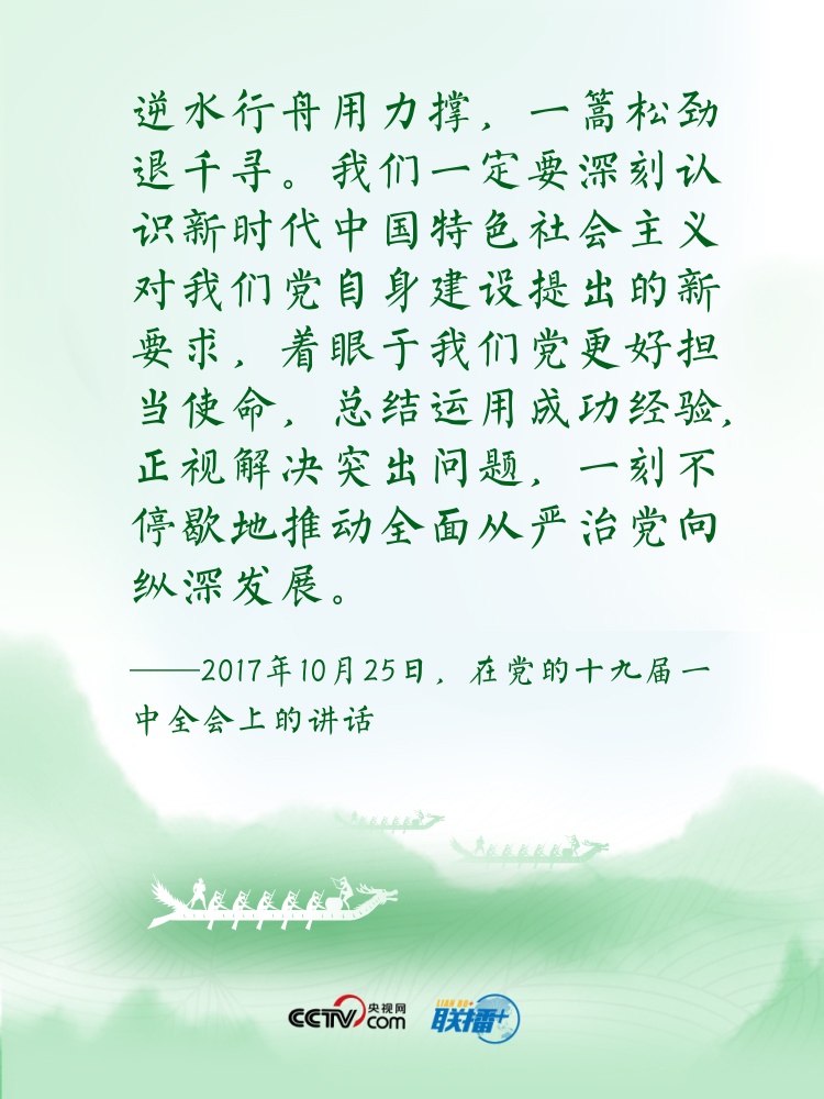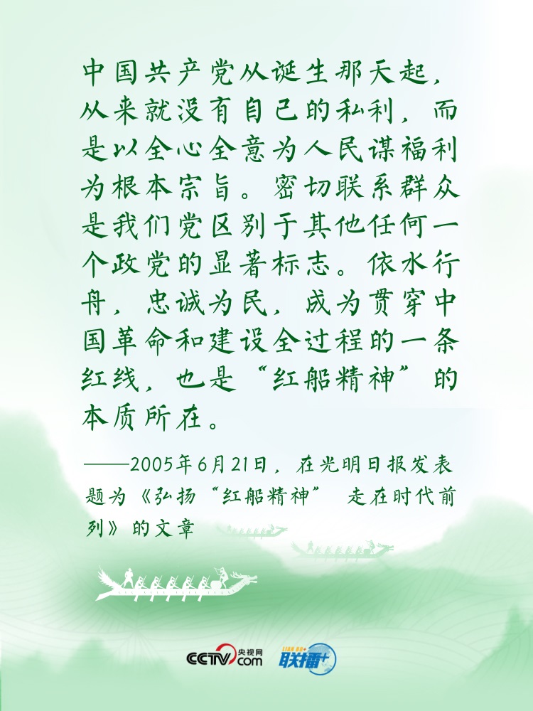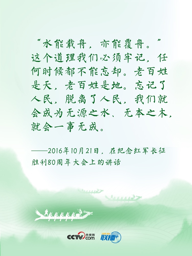 過(guò)端午,賽龍舟。龍舟這項(xiàng)傳統(tǒng)運(yùn)動(dòng),象征著中華民族的拼搏、堅(jiān)韌、團(tuán)結(jié),承載著深植在民族基因里的愛國(guó)主義之魂。“舟”字自古以來(lái)在中華傳統(tǒng)文化中都有著深刻寓意。“依水行舟,忠誠(chéng)為民”“逆水行舟,不進(jìn)則退”......習(xí)近平總書記曾多次以“舟”為喻闡釋思想,寄情言志。央視網(wǎng)《聯(lián)播+》特進(jìn)行梳理,讓我們沿著總書記指引的方向,團(tuán)結(jié)奮進(jìn),砥礪前行?! ?/p>