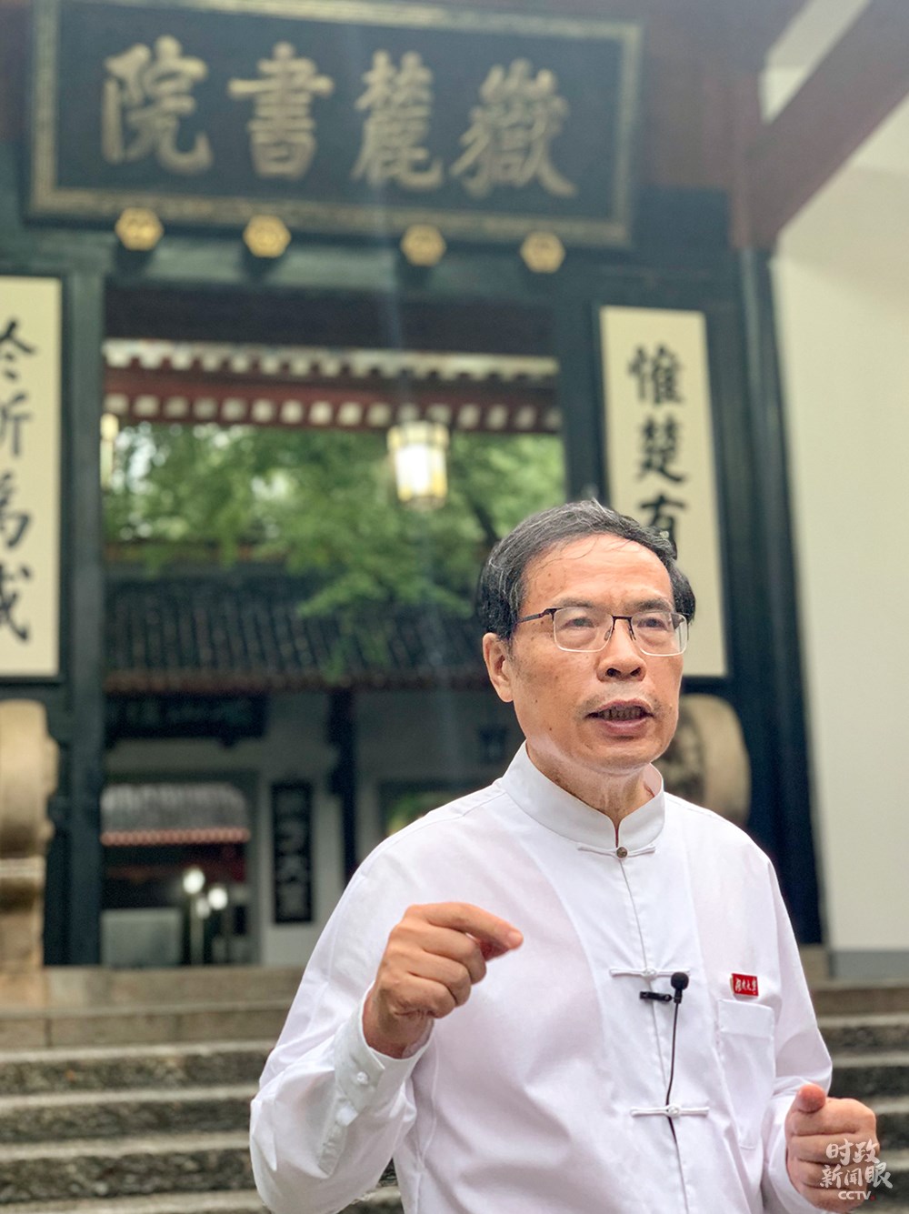 △當(dāng)天給總書記作介紹的是曾任岳麓書院院長(zhǎng)20多年的朱漢民教授。(總臺(tái)央視記者盧心雨拍攝)