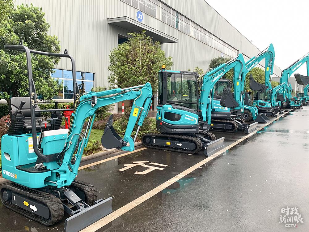 △這是不同型號(hào)的微型挖掘機(jī),特點(diǎn)是動(dòng)臂可偏轉(zhuǎn),底盤可伸縮,適合城市改造、農(nóng)田水利等小規(guī)模項(xiàng)目。(總臺(tái)央視記者章猛拍攝)