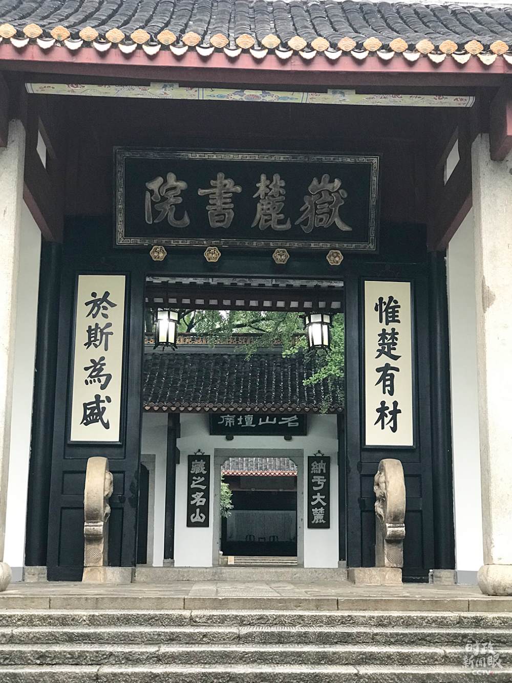 △岳麓書院是中華文化的重要地標(biāo),門前這幅對(duì)聯(lián)“惟楚有材于斯為盛”分別出自《左傳》和《論語(yǔ)·泰伯》。(總臺(tái)央視記者石偉明拍攝)
