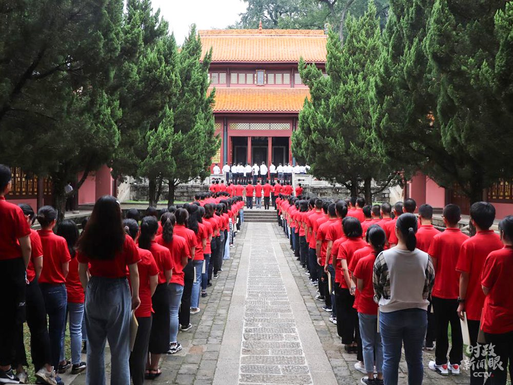 △岳麓書院2020級(jí)新生入學(xué)禮現(xiàn)場(chǎng),142名新生齊聚大成殿前。(來源于岳麓書院官網(wǎng))