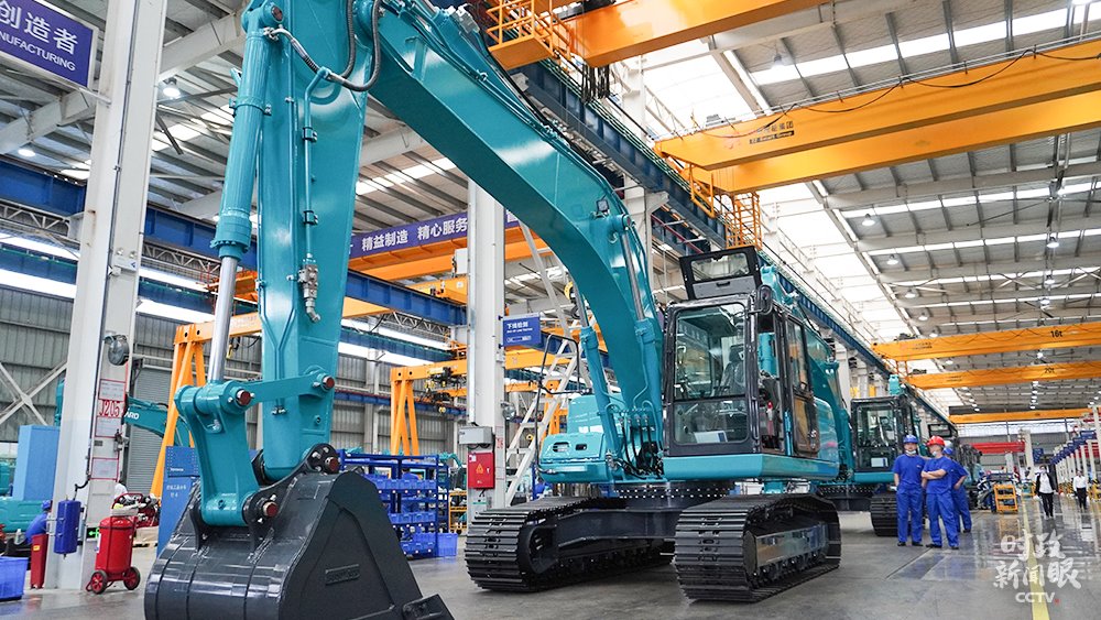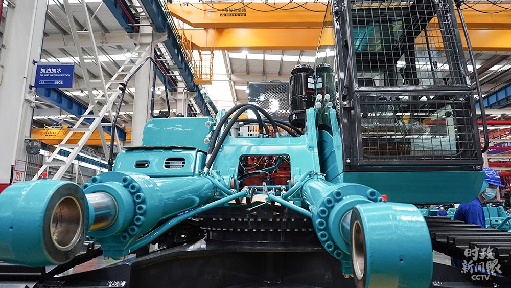 △山河智能生產(chǎn)車間組裝的大型挖掘機(jī),能適應(yīng)多種復(fù)雜地形作業(yè)。(總臺(tái)央視記者郭曉龍拍攝)